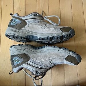 Durable New Balance shoes in tan and brown. Ideal for outdoor adventures.