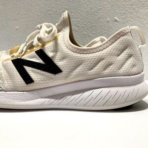 Nice pair of white with black accents Fuel Core Coast V4 running shoes. Good tread and no holes, light staining on toe areas in women’s size 9.5