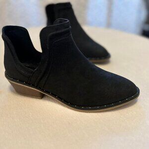Women's New Black Suede Athena Low Cut Ankle Booties with Silver Dainty Studs