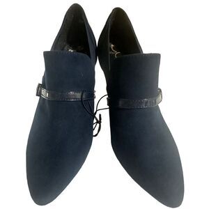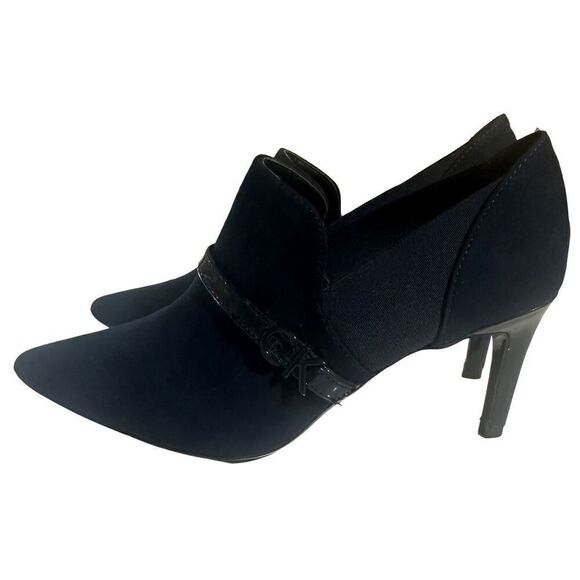 Women's New Calvin Klein Jaclyn Suede Navy Blue Heal Booties With Logo Size 7