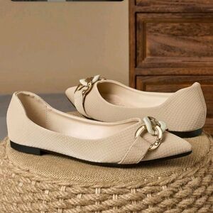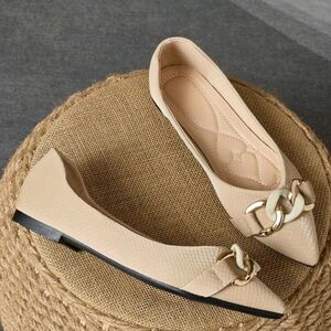 Women's New Metal Buckle Flat Pointed Toe Slip-On Flats, Versatile Fashion Soft