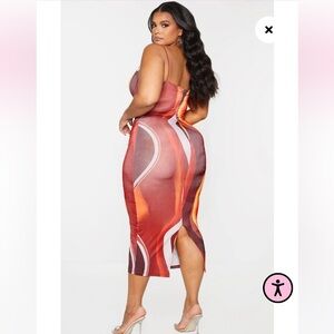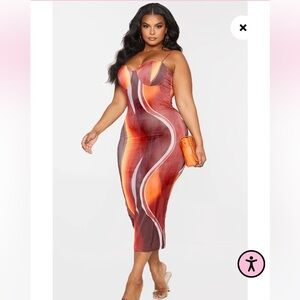 Womens New PrettyLittleThing Plus Brown Ombre Stripe Cup Detail Midi Dress