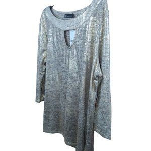 Luxurious-looking, gold glitter type of appearance adds a touch of opulence to this blouse! The elegant and stylish neckline features a keyhole design with a choker for a trendy and modern look.