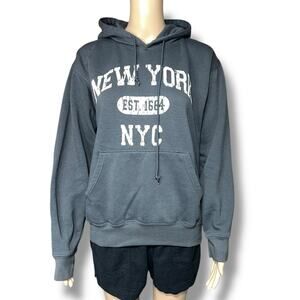 Gray Oversized Sporty New York NYC Hoodie Pullover Hooded Sweatshirt
