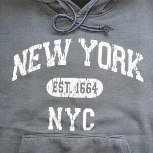 New York NYC Hoodie Pullover Hooded Sweatshirt Oversized Sporty Gray