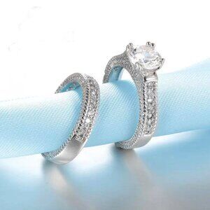 ☆ Brand New Women's Gorgeous Zirconia Round Cut Wedding Set on a Sterling Silver Setting. ☆ This lab-created stone has the ultimate sparkle and shine; it's placed in a shiny .925 Sterling Silver Setting with a Rhodium Overlay for shine and protection