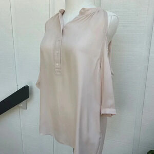 Sweet little neutral blouse with just a splash of sexy with the cold shoulder detail. Beautiful neutral blush color. NWT