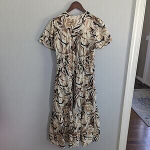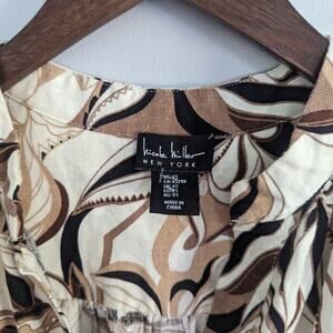 Women's Nicole Miller Cream Brown Black Linen Blend Maxi Dress XS