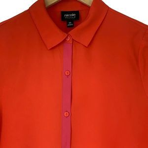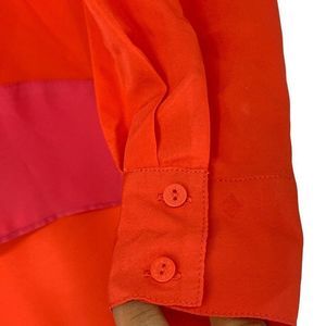 Womens Nicole Miller XSmall Tunic Blouse Coral High Low 3631 NWT Roll Tab Sleeve