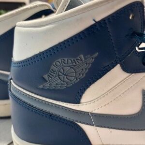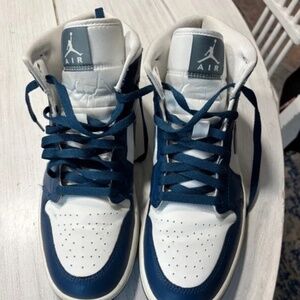 White and blue Nike Air Jordan 1 Mid. Excellent condition! Size women's 10.