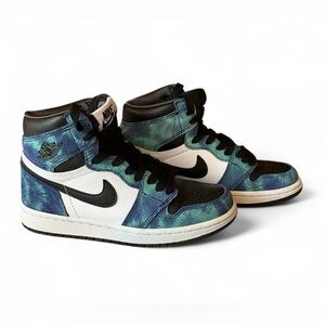 Nike Air high-tops retro OG tie dye aurora green tennis shoes with a sleek black and teal design. Ideal for everyday style.