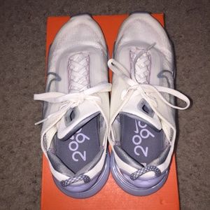 Size 8 Women’s. Worn once! The color way is cream, periwinkle and gray.