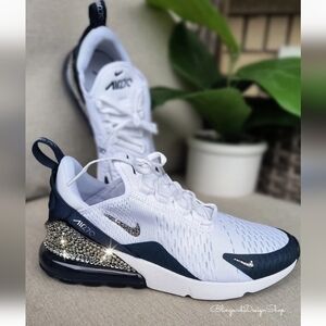 Women's Nike Air Max 270 White Green Sneakers made with Crystals Bling Custom