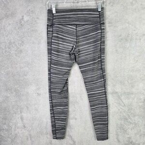 Womens Nike Dri-Fit Gray Striped Athletic Leggings Ankle Cotton Blend Size S