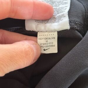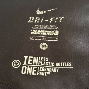 Women’s. Nike. Dri-fit. Black leggings. One legendary pant. Ten less plastic bottles. High waist. Flare leg. Preowned condition. No stains. Two seams loose on inside of leg- see photo. Size Medium.