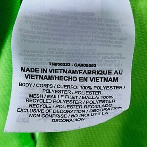 The neon green Nike Dri-FIT racerback tank top features a minimalist aesthetic with a focus on functionality. Its bright color and streamlined design create a sporty and modern look, while the contrasting white trim adds a subtle detail. The use of breathable, moisture-wicking fabric enhances its athletic appeal, making it a practical and stylish choice for workouts.