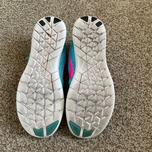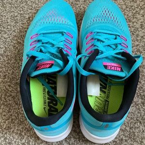 Nike Fee RN running shoes, turquoise with hot pink swish, size 7, worn .