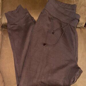 This pair of Nike women's joggers are a Size Large and feature a flat waistband (non-elastic) with adjustable drawstrings. The fit is high-waisted, and the ankle cuffs are also flat to match (non-elastic), which makes these joggers difficult to find right now on retail websites. There's very little pilling at the top of the inseam, and the pants are in great condition. Purchased in Fall of 2023 and worn a handful of times.