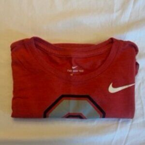 Women's T-Shirt, Nike, The Nike Tee, The Ohio State University, Red with Black White and Gray Logo and Detailing, Women's Cut, Women's Size Small (S), Short-Sleeve