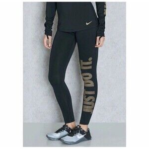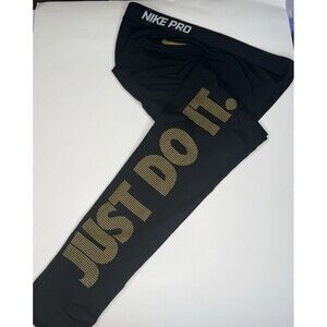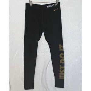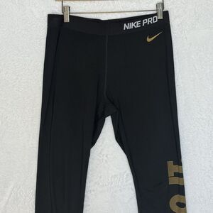 Women's Nike Pro Warm Graphic Training Tights Size XL Metallic Gold Letters