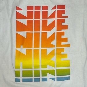 Womens Nike Tee Shirt Ombre Nike Graphic Rainbow Red Tag Size Large Short Sleeve