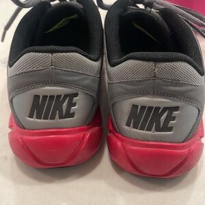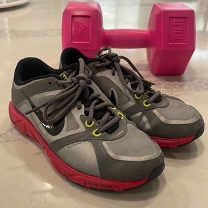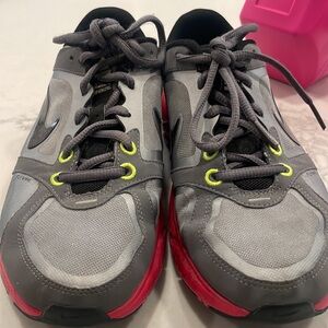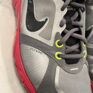 Women’s Nike athletic shoes. Fly wire Nike free XT. Gray black and red. Worn but good condition. Women size 6. Available for immediate shipping. Smoke free, pet free home.