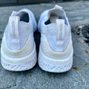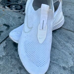 These are a pair of women’s Nike running shoes that have only been worn twice. I had bought them and realized I had ordered the wrong size. These are a size 7. I wear a 7 1/2. They are beautiful shoes.