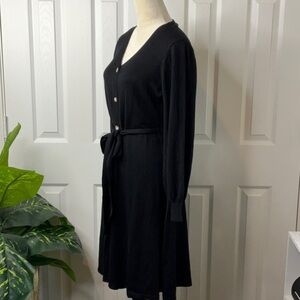 Women's Nina Leonard Balloon Sleeve Midi Black Sweater Dress Size L