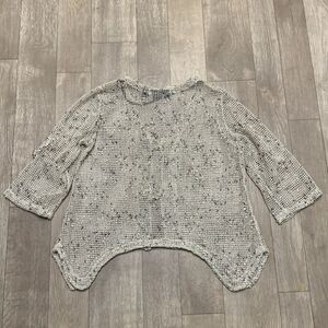 24” from top to bottom 20” armpit to armpit 11.5” armpit to end of sleeve. Size small. Gently used. 3/4 sleeve. Cream color with hints of black SKU 6757