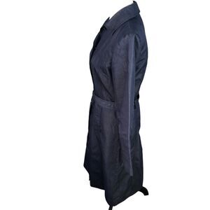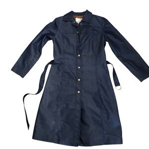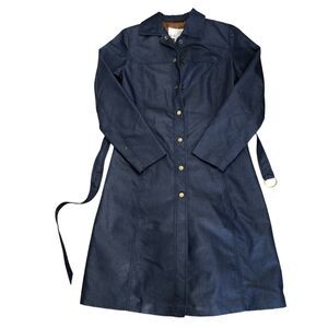 Womens Nine West Coated Denim Snap Front Long Line Belted Dress Coat Sz S