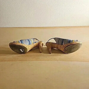 Womens Nine West Cork Blue Stripe Fabric Heel Sz 7