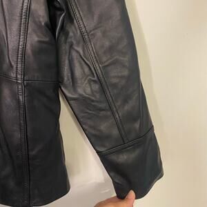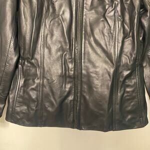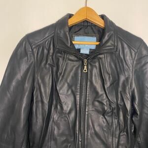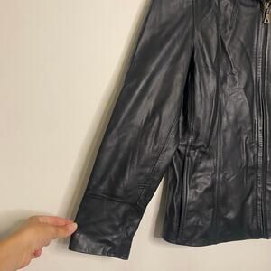 Womens Nine West Leather Jacket Full Zip Medium Petite Lightweight Punk Goth