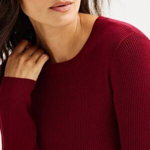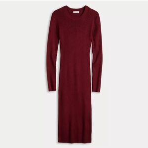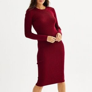 Women's Nine West Long Sleeve Crewneck Midi Sweater Dress Wine Red S