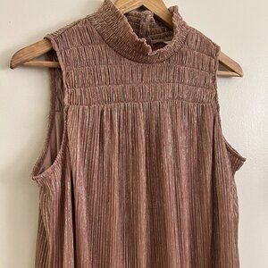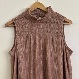Women's Nine West Mauve Pink and Gold Mockneck Shift Ribbed Dress - Small