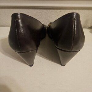 Women's Nine West Open Toe Wedge Pump Dark Brown Size 9.5M