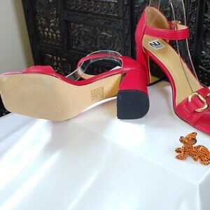 Women's Ninety Union Sandals, Red, Size 7, lightly worn, 2 1/2" heel