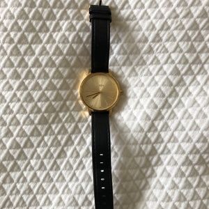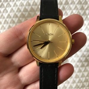 This gently used Nixon watch is a classic, but the gold face gives it a slight edge. Black band, all it needs is a battery upgrade!