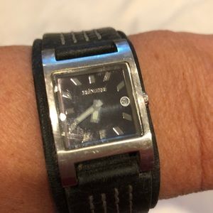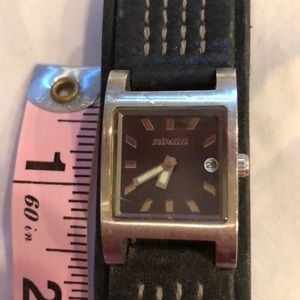 Gently used women’s Nixon watch. Black leather band. Needs battery