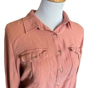 Womens No Boundaries Button Down Cinched Waist Lightweight Long Sleeve Top Sz L