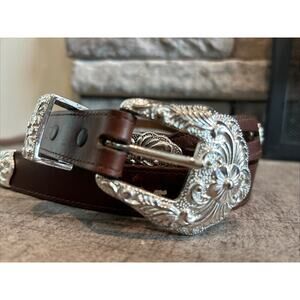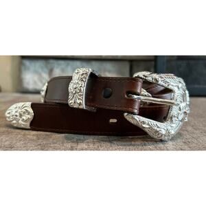 Women’s Noconabelt Co Leather Brown W Floral Buckle / Conches Size 36