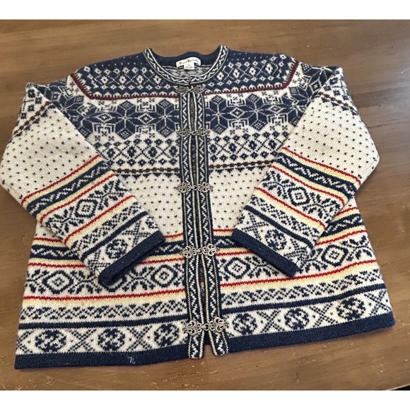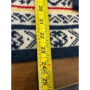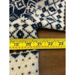 Stay cozy and stylish with this beautifully designed Nordic pattern sweater. Featuring a blend of blue and cream colors, this sweater is perfect for chilly days. Its intricate design adds a touch of elegance to any outfit.