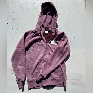Women's North Face Hoodie Pink Crimson Logo XS Outdoor Camp Hike Gorpcore Zip. Poly blend.