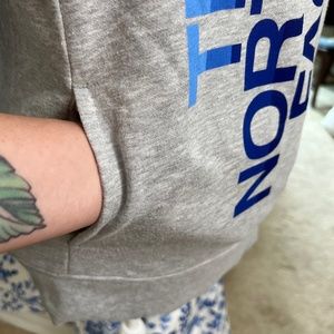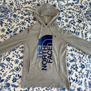 Women's The North Face hoodie in gray heather with urban navy logo graphic. ππ€π€ This hoodie is ultra comfy, light-weight, and makes a great transition piece from Summer to Fall. πβοΈπ