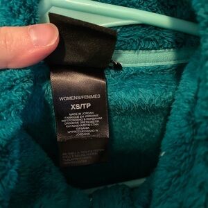 Size xs but also fits a small. In good used condition. Beautiful teal color