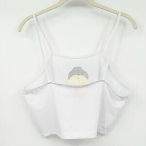 Womens Novelty Monk Buddha Try Not To Be A C*nt Graphic Crop Tank Top in White. Size Large