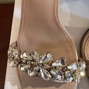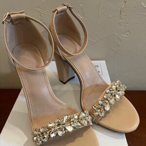 Women's Nude Block Heel Sandals w/Crystal Embellished Strap & Buckle Size 6.5