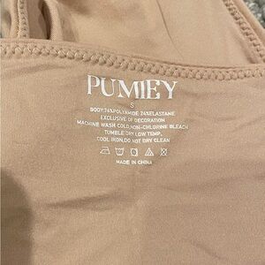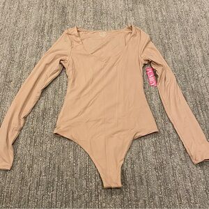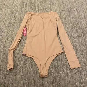 PUMIEY Women's Scoop Neck Long Sleeve Bodysuit Body-hugging Top Smoke Cloud Collection. Nude. Small. NWT