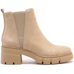 Women's Nude Chelsea Boots Elastic Chunky Heel Platform Lug Sole Ankle Boot