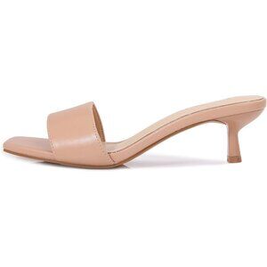 Women's Nude Kitten Heels Sandal Heeled Slides Square Open Toe One Band Slip On