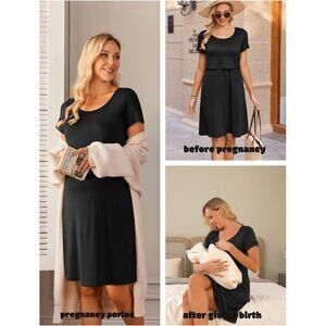 Comfortable and practical, this maternity and nursing dress features a discreet lift-up front panel for easy breastfeeding access. Designed with soft, breathable fabric and a flattering loose fit, it supports comfort during all stages of pregnancy and postpartum.